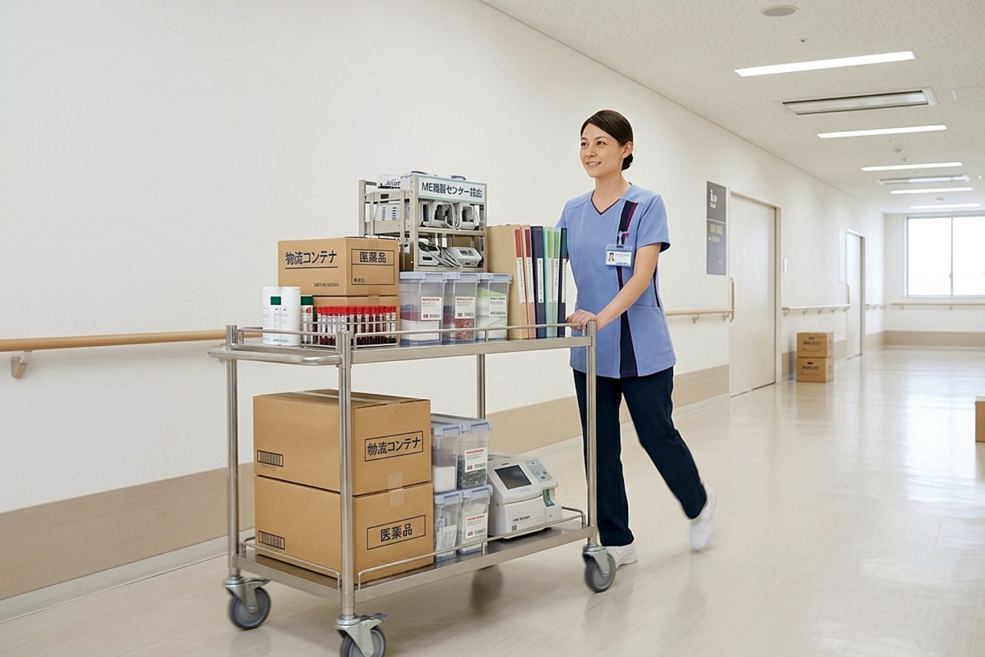 このお仕事のメインは、広い院内を巡りながら、検査に必要な検体や処方されたお薬、医療器具、診療書類などを指定の場所へ届けること。患者さんの身体に触れる直接的な介助業務(食事や排泄、着替えの補助など)は一切ないため、「医療現場は初めてで少し不安」という方でも安心してスタートできます。まずは病院内のルートや各部署の名前を覚えることから始めましょう。重いものを持つ場面ではワゴンを使用するので、無理な負担もありません。院内をウォーキング感覚で軽快に動き回るため、働きながら健康を維持したい方、じっとしているよりテキパキと効率よく動くことが好きな方に、これ以上ないほどぴったりの環境です。